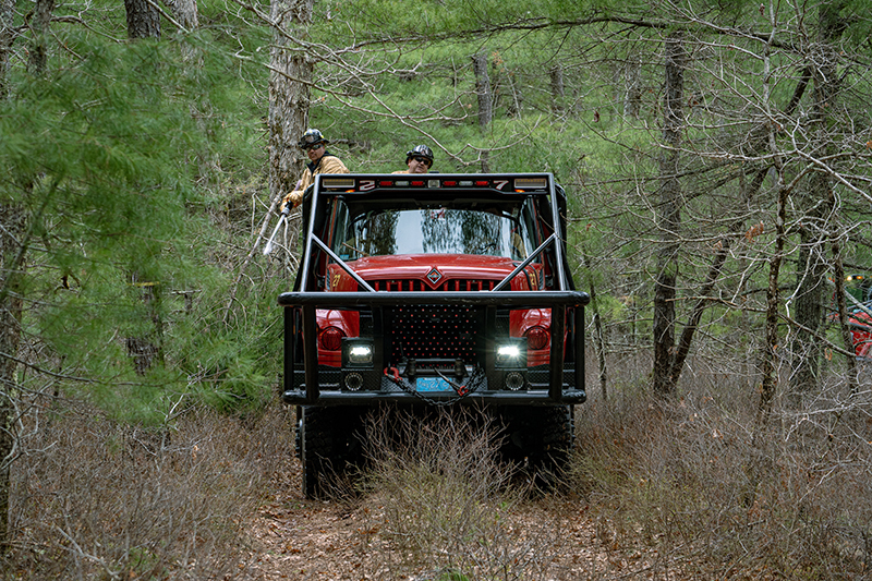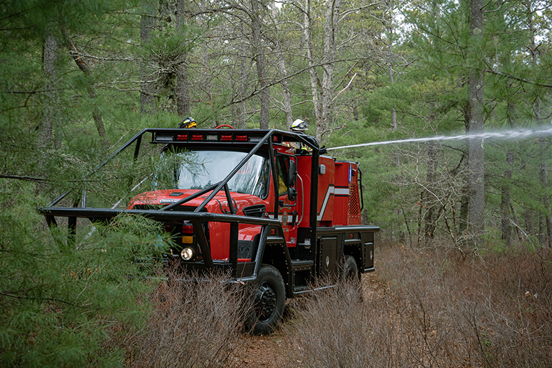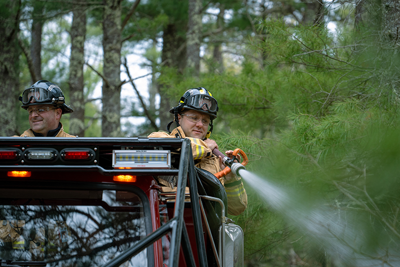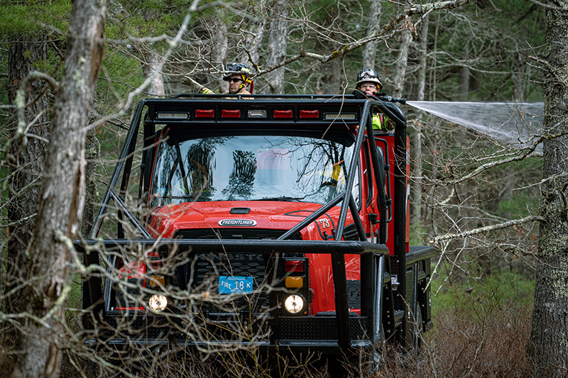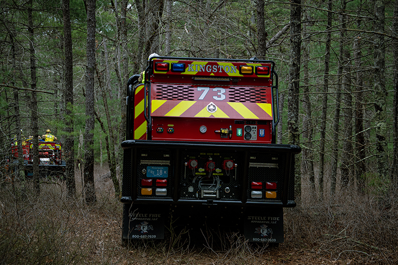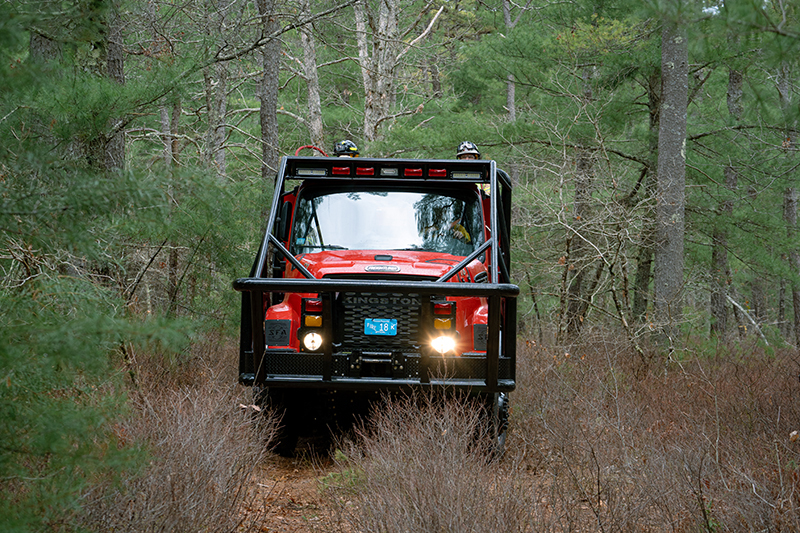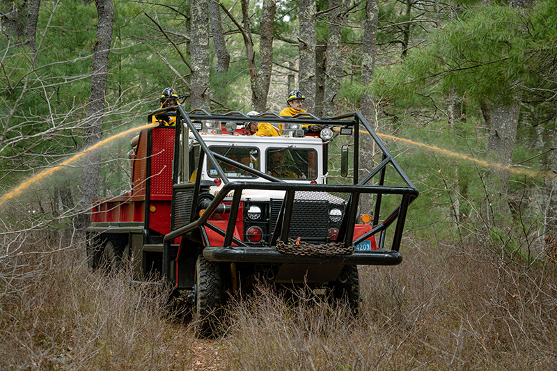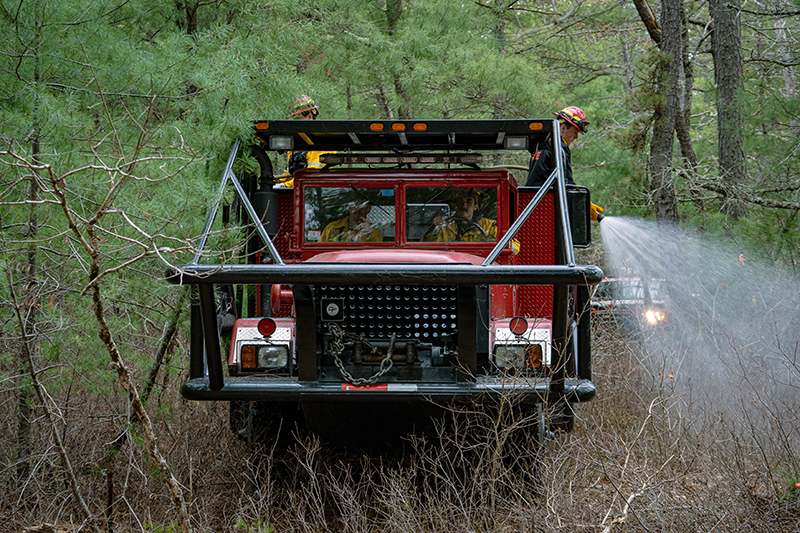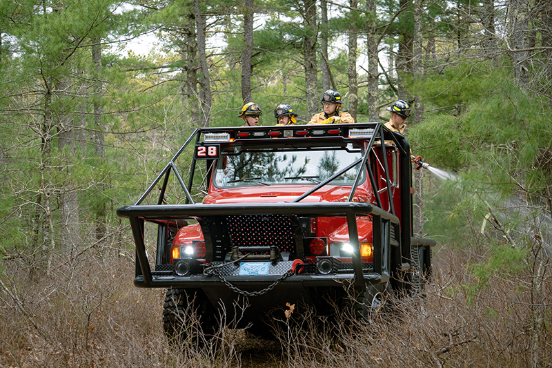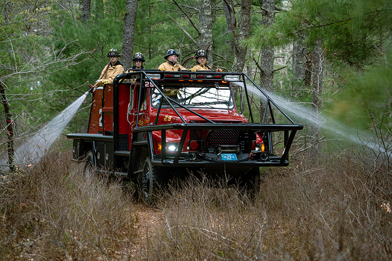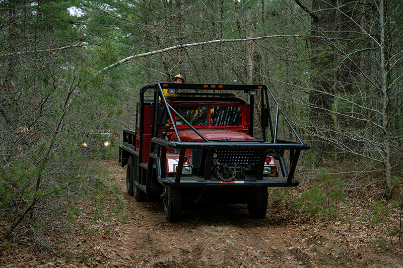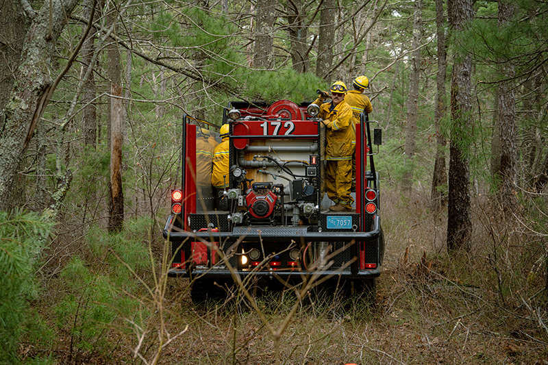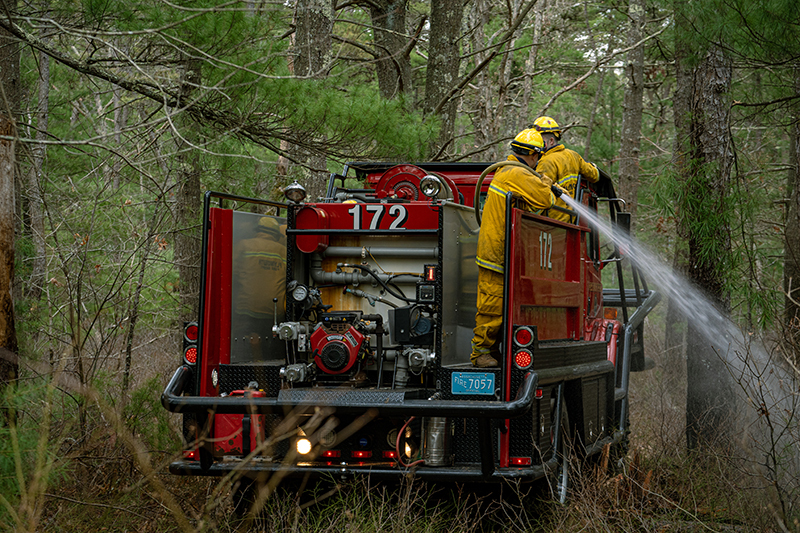 This year’s Annual Deputy Drill focused on a large-scale Wildfire training at the Plymouth/Carver Airport area. For many years, the airport has been kind enough to allow us to use a large rear wooded parcel to practice our breaker driving skills under realistic conditions. An estimated 150 Officers and Firefighters from 9 Towns and State agencies, utilizing 14 Brush Breakers, 1 Forestry Truck, 2 Tankers, 2 Engines, numerous Command Vehicles, and Chief Officers, participated in the morning exercise. The drill focused on brush breaker driver operator training techniques, wildfire crew operations, water resupply training, a chainsaw safety class, and a brush breaker winch operations course. Brush Breakers, guided by our Fire Officers and Station Trainers, traveled a heavily wooded course set up by Deputy Germaine to simulated flanks of the fire, driving through a wood road course utilizing all the water each carried. A water supply training component with crews consistently refilling each Brush Breaker using Tankers 1, Tanker 2, and Engine 2. Tankers 1 and 2 shuttled over 15,000 gallons of water for breakers to quickly fill up and get back to work. A big thank you to all our Officers and Firelighters for attending and helping throughout the day! Overall, our goal of giving each Firefighter a real-life training experience and increasing their knowledge of working with our large bush breakers was accomplished! Hats off to Deputy Germaine for organizing the drill, CFD Assistant Deputy Boyle, our Officer core, and Chiefs and Officers from surrounding communities for giving up their Sunday to help! Big props to our Station coverage crew and our awesome chefs back at Station 1, who served almost 200 hamburgers and hot dogs to the hungry troops at the conclusion of the drill. (Photo’s by Future CFD Firefighter, Matt Heath)