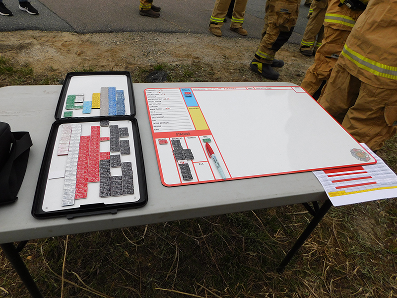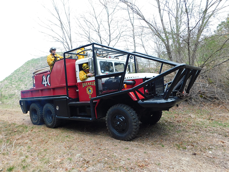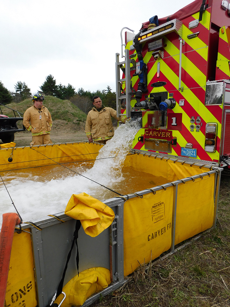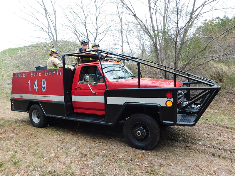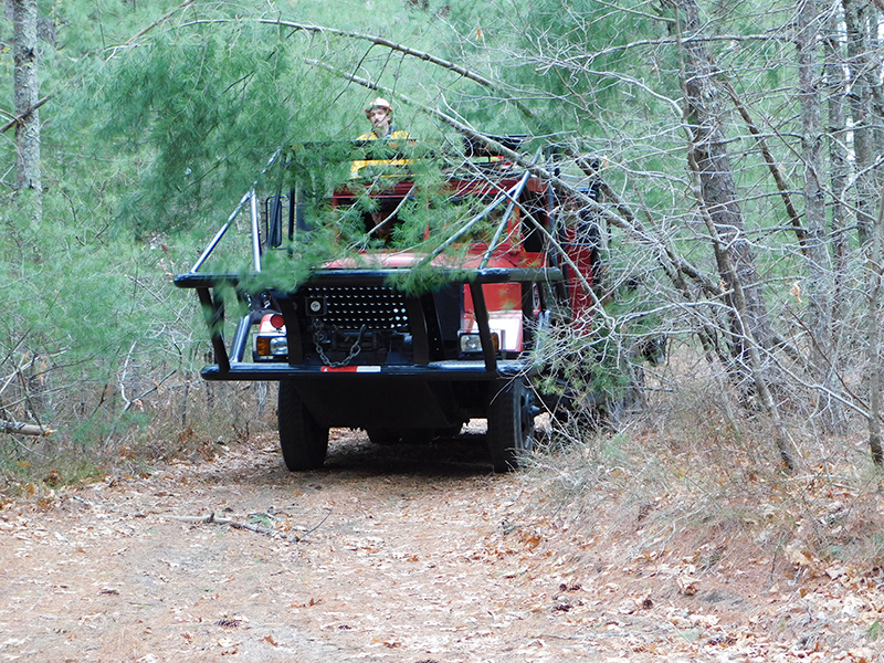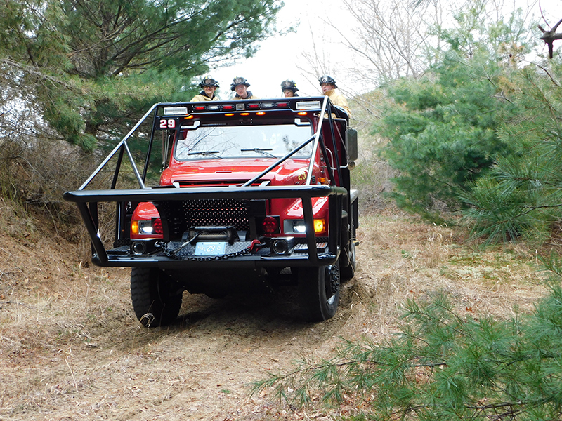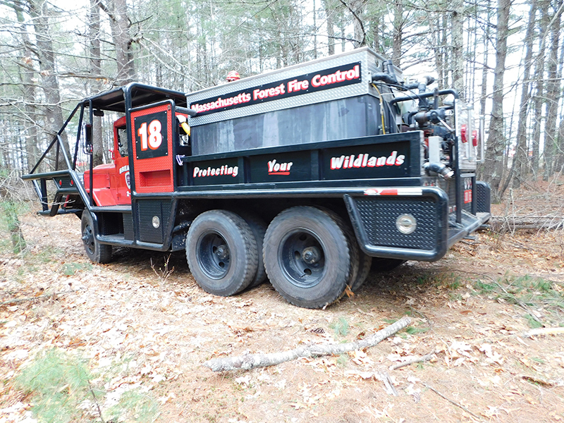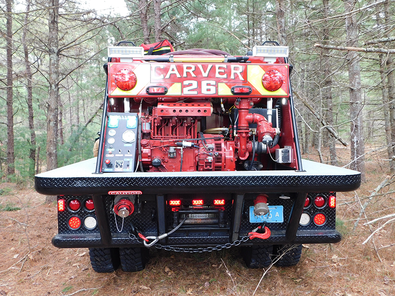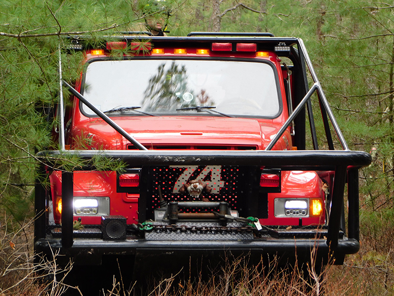 This year’s Annual Deputy Drill focused on a large-scale Wildfire training at the Plymouth/Carver Airport area.  For many years, the airport has been kind enough to allow us to use a large rear wooded parcel to practice our breaker driving skills under realistic conditions.  An estimated 150 Officers and Firefighters from 9 Towns and State agencies, utilizing 14 Brush Breakers, 1 Forestry Truck, 2 Tankers, 2 Engines, numerous Command Vehicles, and Chief Officers, participated in the morning exercise.  The drill focused on brush breaker driver operator training techniques, wildfire crew operations, water resupply training, a chainsaw safety class, and a brush breaker winch operations course.  Brush Breakers, guided by our Fire Officers and Station Trainers, traveled a heavily wooded course set up by Deputy Germaine to simulated flanks of the fire, driving through a wood road course utilizing all the water each carried.  A water supply training component with crews consistently refilling each Brush Breaker using Tankers 1, Tanker 2, and Engine 2.  Tankers 1 and 2 shuttled over 15,000 gallons of water for breakers to quickly fill up and get back to work.  A big thank you to all our Officers and Firelighters for attending and helping throughout the day! Overall, our goal of giving each Firefighter a real-life training experience and increasing their knowledge of working with our large bush breakers was accomplished!  Hats off to Deputy Germaine for organizing the drill, CFD Assistant Deputy Boyle, our Officer core, and Chiefs and Officers from surrounding communities for giving up their Sunday to help! Big props to our Station coverage crew and our awesome chefs back at Station 1, who served almost 200 hamburgers and hot dogs to the hungry troops at the conclusion of the drill. (Photo’s by Retired CFD Firefighter, Rick Leopardi)