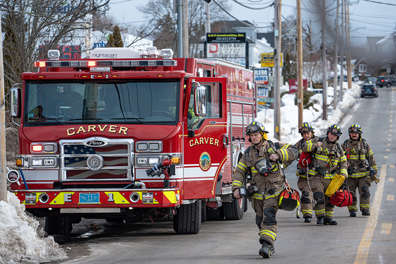 Carver Firefighters responded to a second alarm fire in Kingston today. C3 and Engine 1 with a crew of 6 were assigned as the Rapid Intervention Team, which is specifically for the purpose of rescuing firefighters if something goes wrong inside the fire building. Despite having multiple frozen hydrants, Kingston Fire quickly brought the fire under control. Although nobody was home at the time, it saddens us to report that multiple pets passed away in the fire. (Photo’s by Future CFD Firefighter, Matt Heath)
