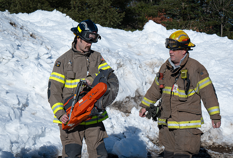 Recruit Training Class #11 was Ladders and Ventilation (Practical). During this practical course our new Firefighters are taught different ladder raises and carries by our experienced group of Recruit Trainers. The class is then split into two groups, with half practicing ladders and the other half concentrating on hydraulic, mechanical, and roof ventilation using our training building and one of the roof-cut props (Blizzard snow storm did help here…) What a tremendous value to being able to have our new Firefighters practice real life scenarios under one roof in our own backyard. (Photo’s by Future CFD Firefighter, Matt Heath)