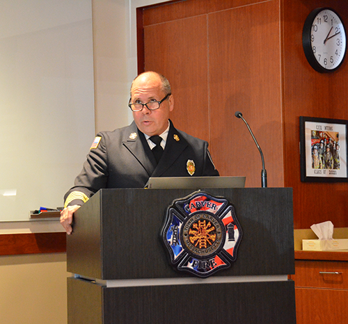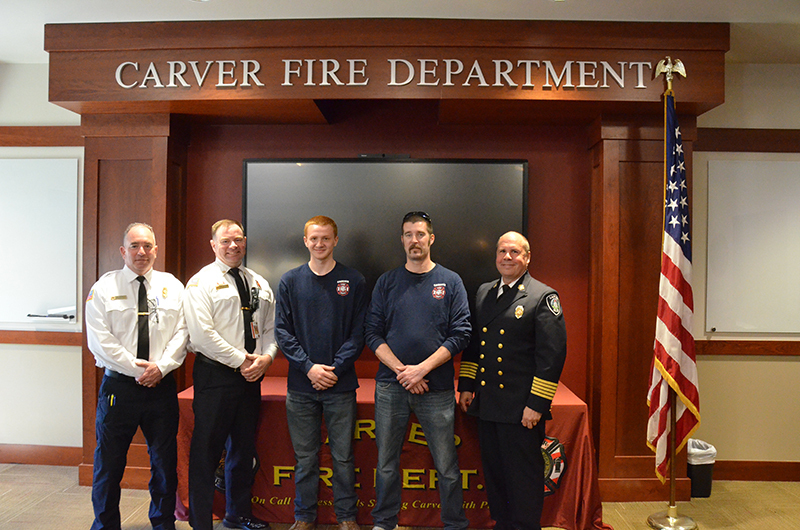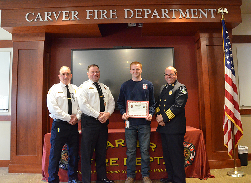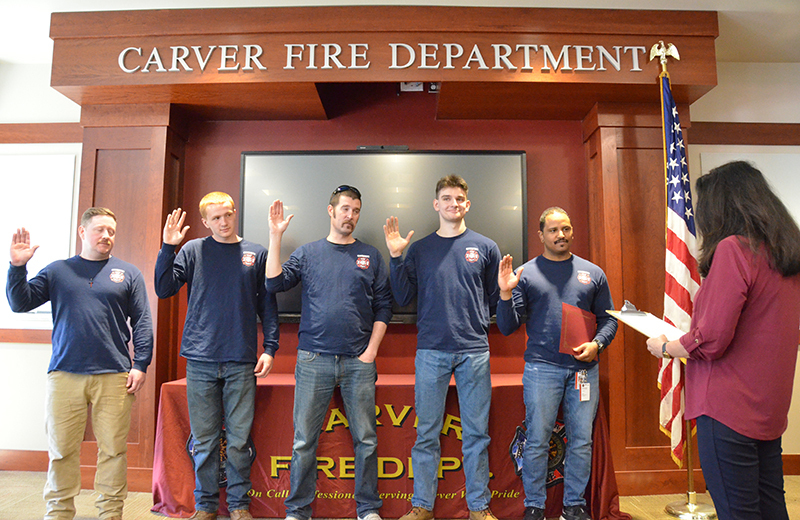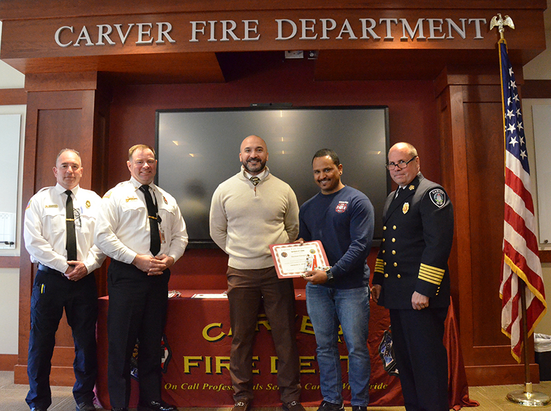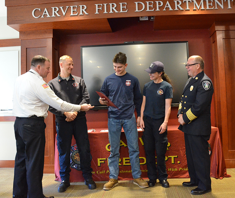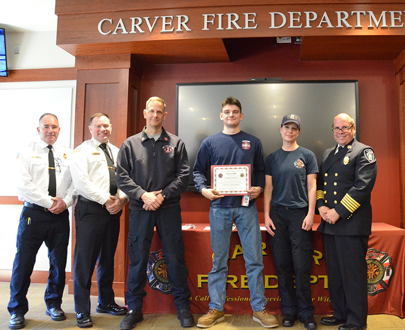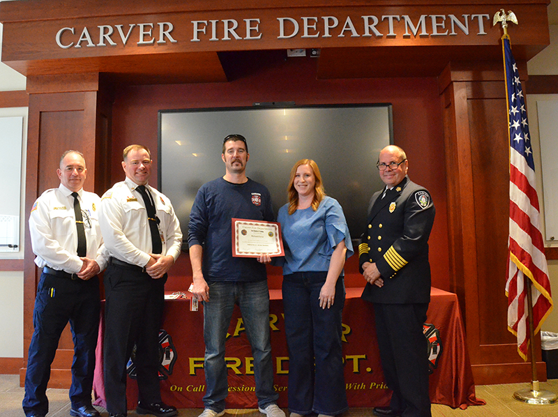 Our new Recruits last training class was a good one – Live Fire Training.  Crews practiced live fires on the first and second floors of the training building.  Each team of new firefighters responded as an Engine Company, utilizing Engine 1 to the Training Facility for multiple simulated structure fires.  Each recruit got a chance to operate the different positions of a structural entry team, practicing nozzle patterns and positive pressure ventilation.  It was a long day, but a tremendous amount of experience was gained that will help these new Firefighters transition into a great CFD career.  After the morning practical, it was on to graduation….  Family and friends attended to witness that special moment when titles change from Recruit to FIREFIGHTER! The ceremony included speeches by Select Board Chairman Mark Townsend, Town Clerk Cara Dahill, Association President Bob Middendorf, Deputy Germaine, Assistant Deputy Boyle and Chief Weston. Official Department Badges, Accountability ID’s and Graduation Certificates were presented.  This was a day to remember. Please join me in welcoming our newest Carver Firefighters in the Class of 2026. (Photo’s by Firefighter, Steve Falconer)
